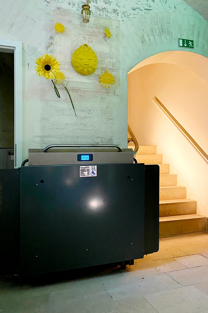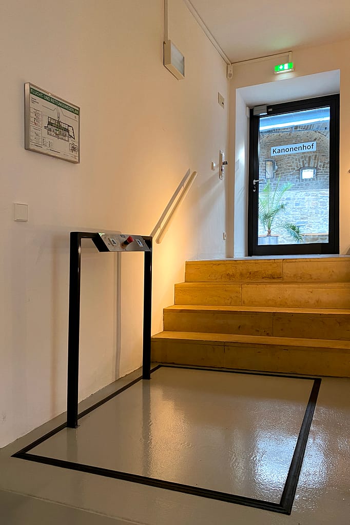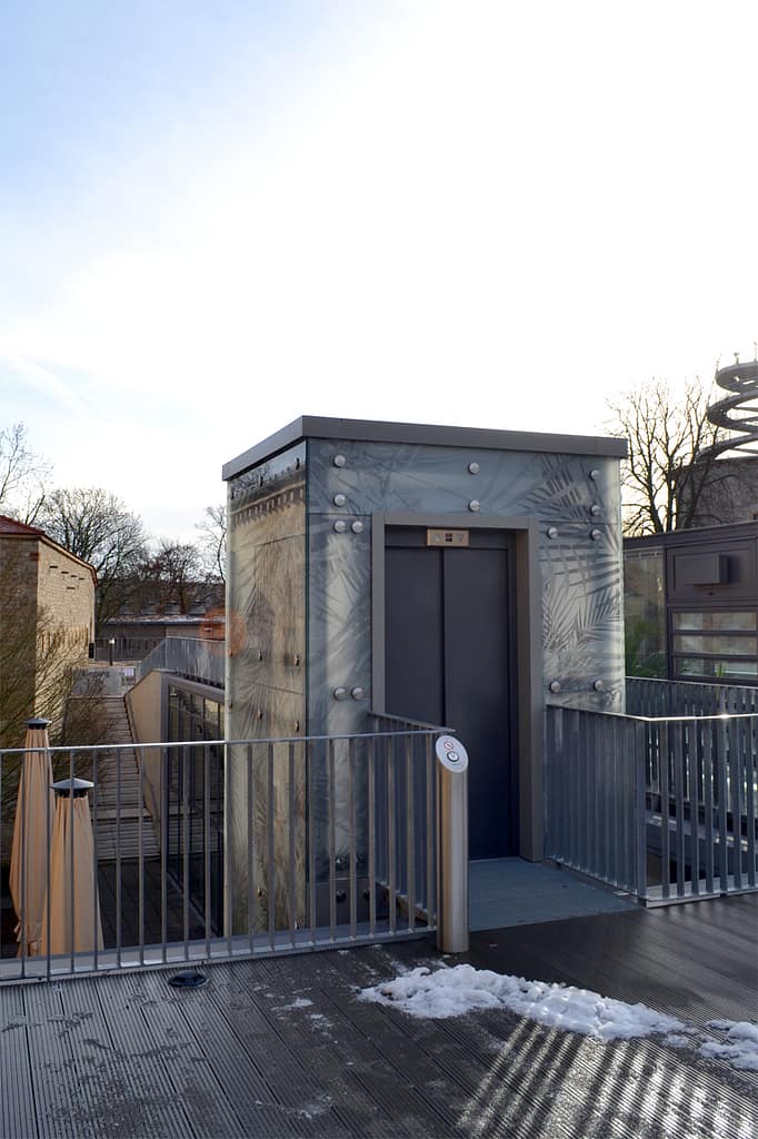 Mit der Realisierung des Außenaufzugs wurde eine barrierefreie Verbindung vom Parkgelände der ega zum Museumsfoyer geschaffen und ist seit dem für alle Besucher des ega-Geländes zugänglich. Mit der Denkmalpflege wurde die genaue Lage des neuen Aufzuges abgstimmt. Das Stahltragwerk wurde in eine punktgehaltene Glasfassade mit allseitigem Bildmotiv (Palmen) verpackt. Auch im Inneren des Gebäudes fehlte es bisher an barrierefreien Verbindungen zu den einzelnen Bereichen des Museums. Hier wurden verschiedene Lösungen von versenkbaren Plattformlift bis zum Treppenlift realisiert.